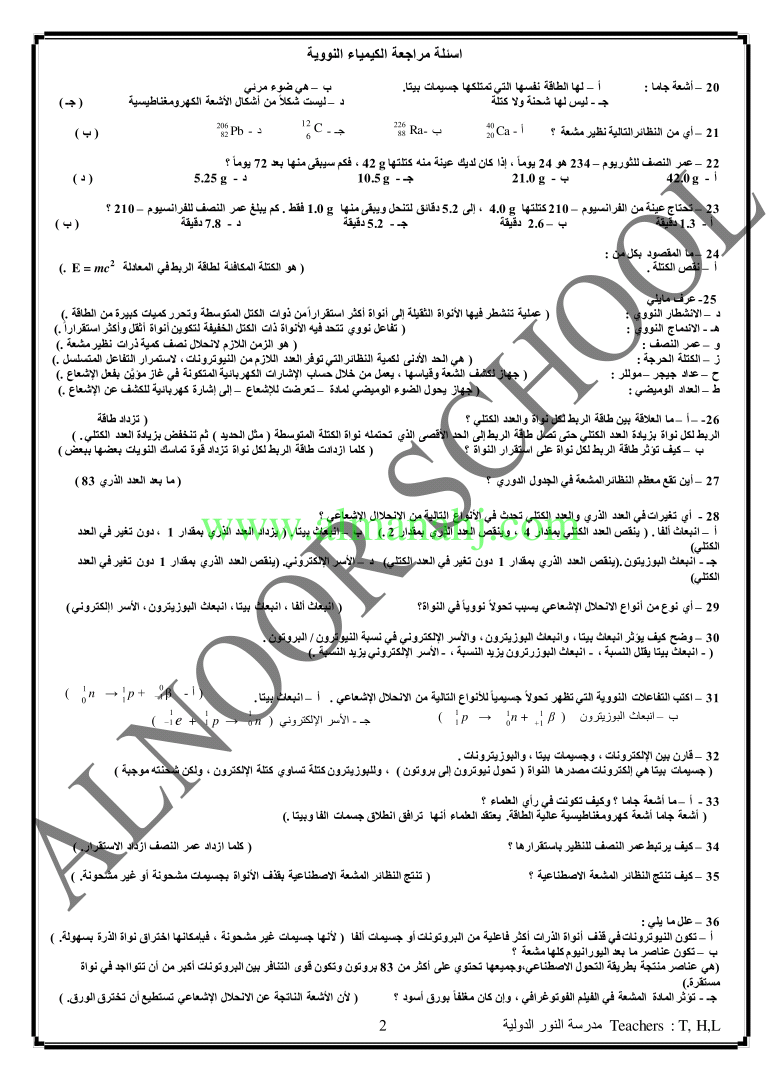 اوراق عمل شاملة لبحث الكيمياء النووية دمشق الآن التعليمية Facebook