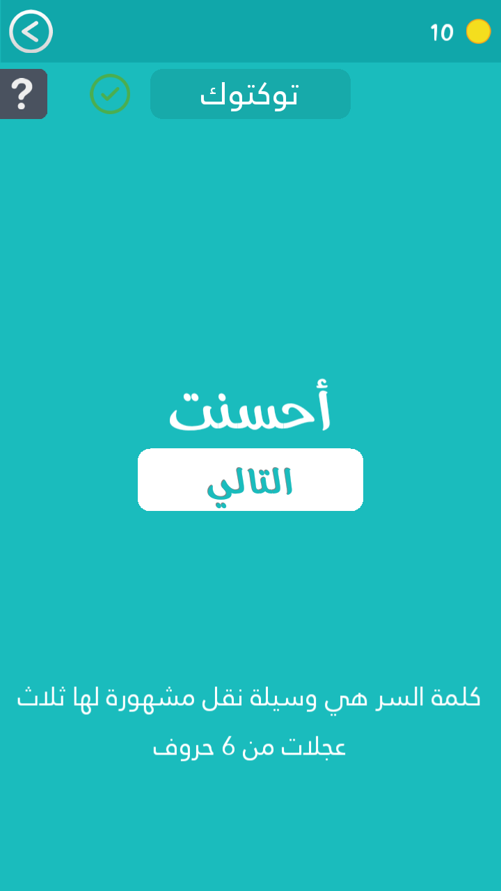 اجابة فى وسيلة نقل مشهورة لها ثلاث عجلات من ستة احرف من لعبة كلمة السر 2
